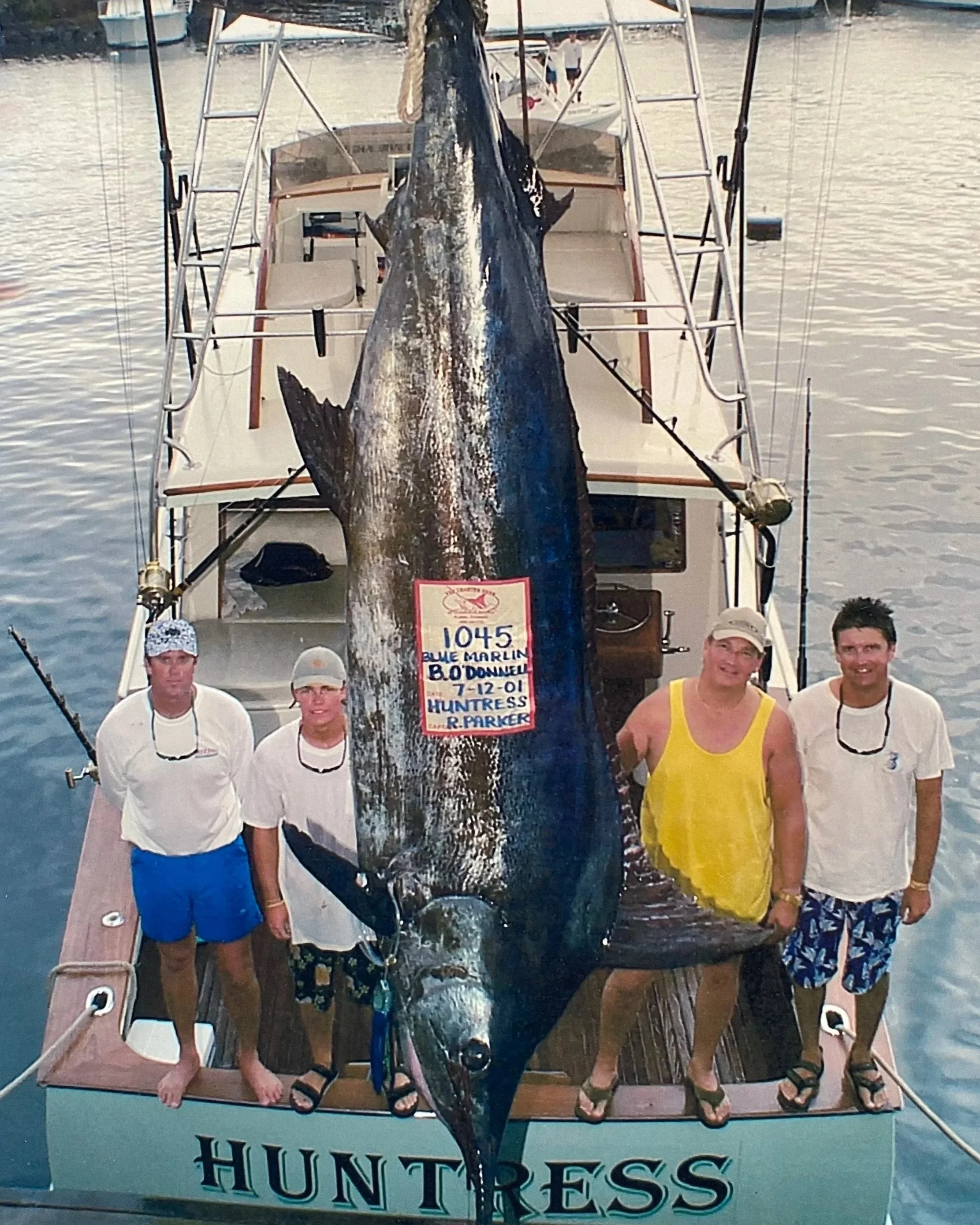 The Huntress is a legendary 42’ Merritt sportfishing charter based in Kona, Hawaii, with a proven record that few boats in the world can match. Fishing in Hawaiian waters since 1973, she has caught more grander marlin than any other boat in Hawaii. Formerly named Black Bart and operated by the legendary Captain Bart Miller, the vessel made history in 1984 with a 1,656-pound Pacific blue marlin, one of the most iconic catches in sport fishing. Notably, the Huntress also won the 2014 World Cup with Captain Steve Epstein and Stephanie Choate — the second-ever female angler to win the tournament.